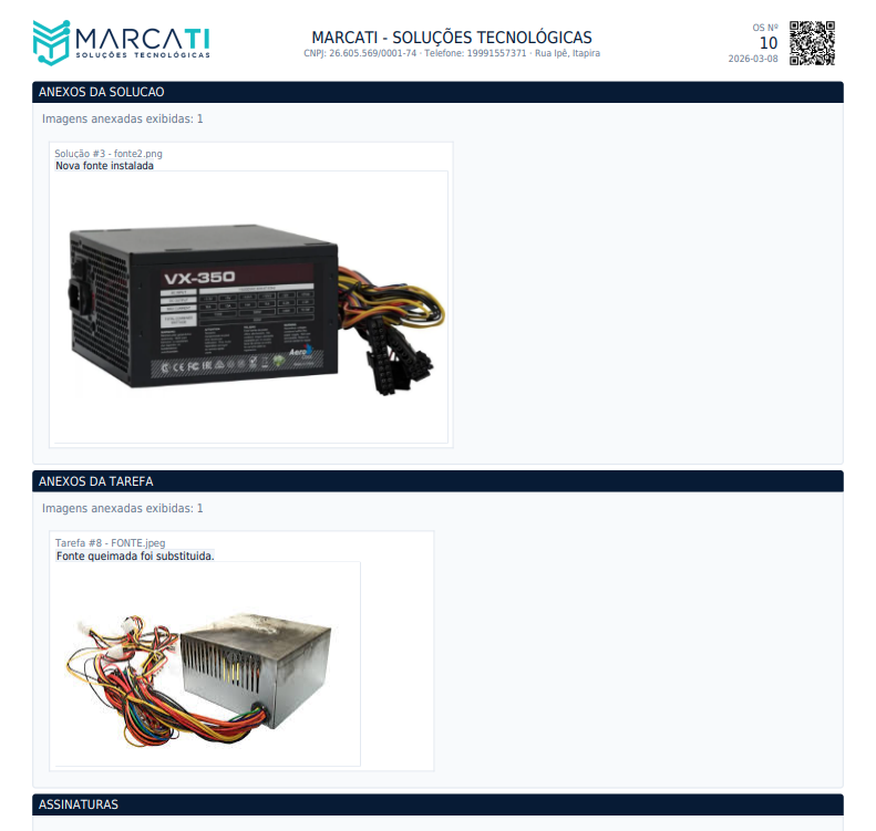 Na prática, isso significa que qualquer imagem anexada ao atendimento pode agora fazer parte de uma estrutura organizada dentro da OS, tornando a documentação muito mais clara e fácil de compreender.