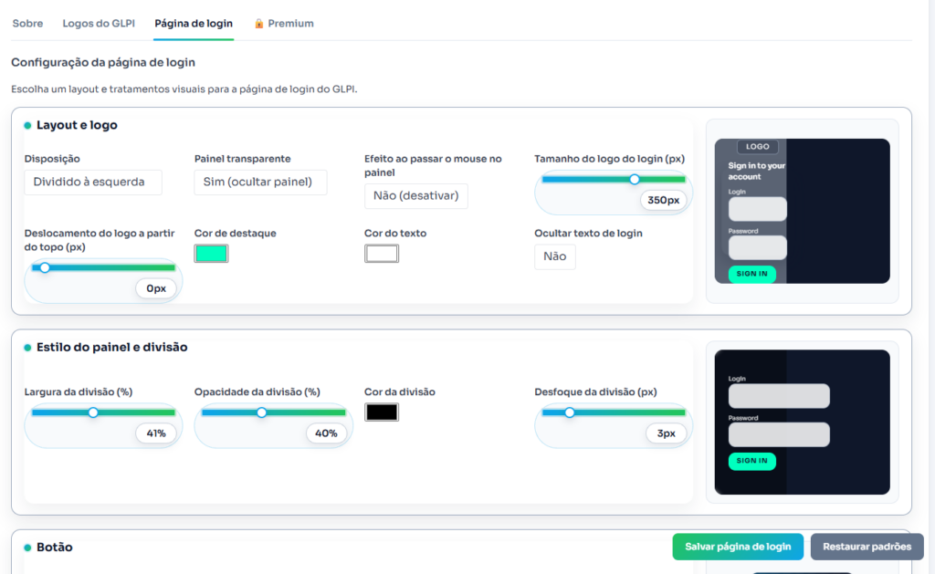 Desenvolvemos então um plugin compatível com GLPI 10 e 11, focado em permitir personalização visual profissional sem comprometer estabilidade e futuras atualizações.